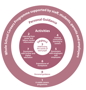 To help us with our planning we follow a set of core guidelines called The Gatsby Benchmarks. These are 8 key areas that contribute to effective careers provision. Each term we complete an evaluation using a system called ‘Compass’ this allows us to rate our provision against each benchmark and indicates what our focus needs to be. Our aim is for 100% in all 8 benchmarks!