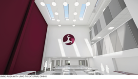 The main dining area is located on the ground floor, providing a focal point for school life. Pupils will move through this congregation space and can then access the relevant parts of the school, or flow towards the external play areas as required.