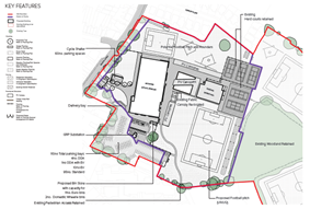 The proposals are to remove the existing school buildings and replace them with a modern three-storey building towards the front of the campus. The existing sports hall is being retained in its current position.
