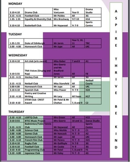 We have a wide range of extra curricular activities on offer, all of the clubs are well attended.